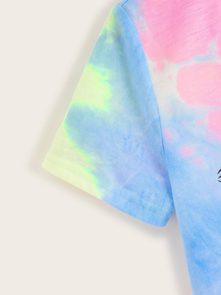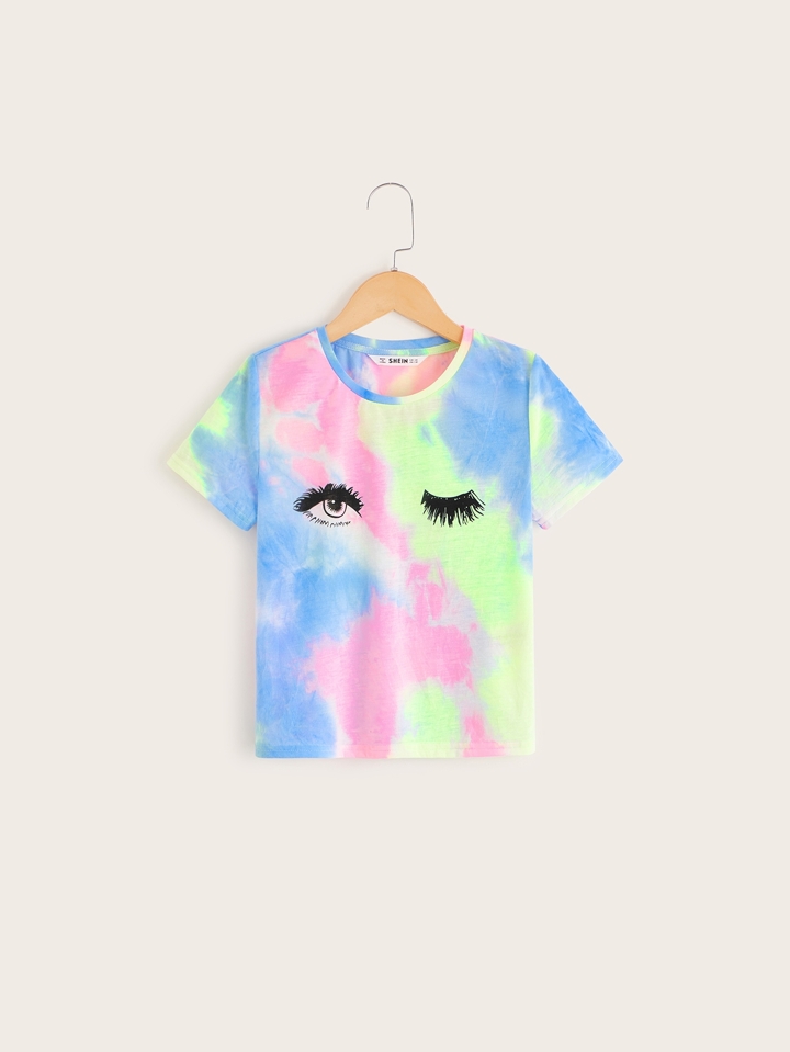 تي شيرت بصبغة بطباعة عين و رمش للبنات