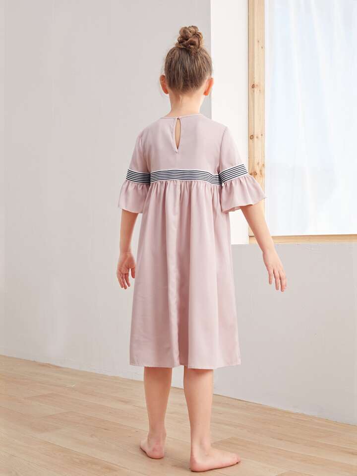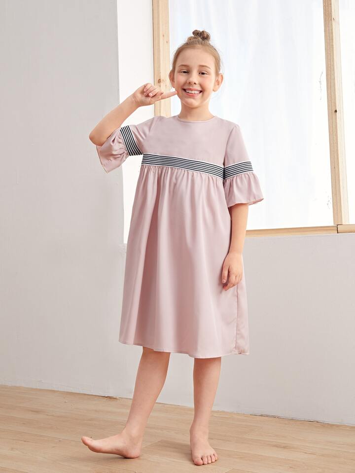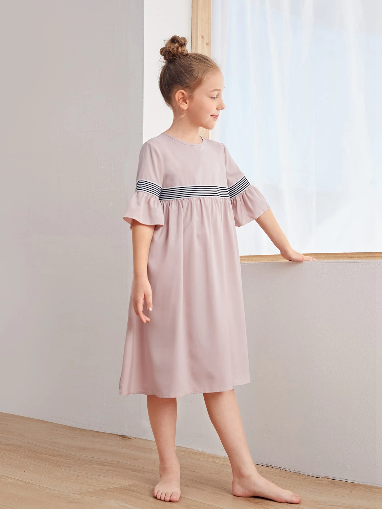 فستان ليلي بتفاصيل شريط مخطط وباكمام منتفضة للبنات
