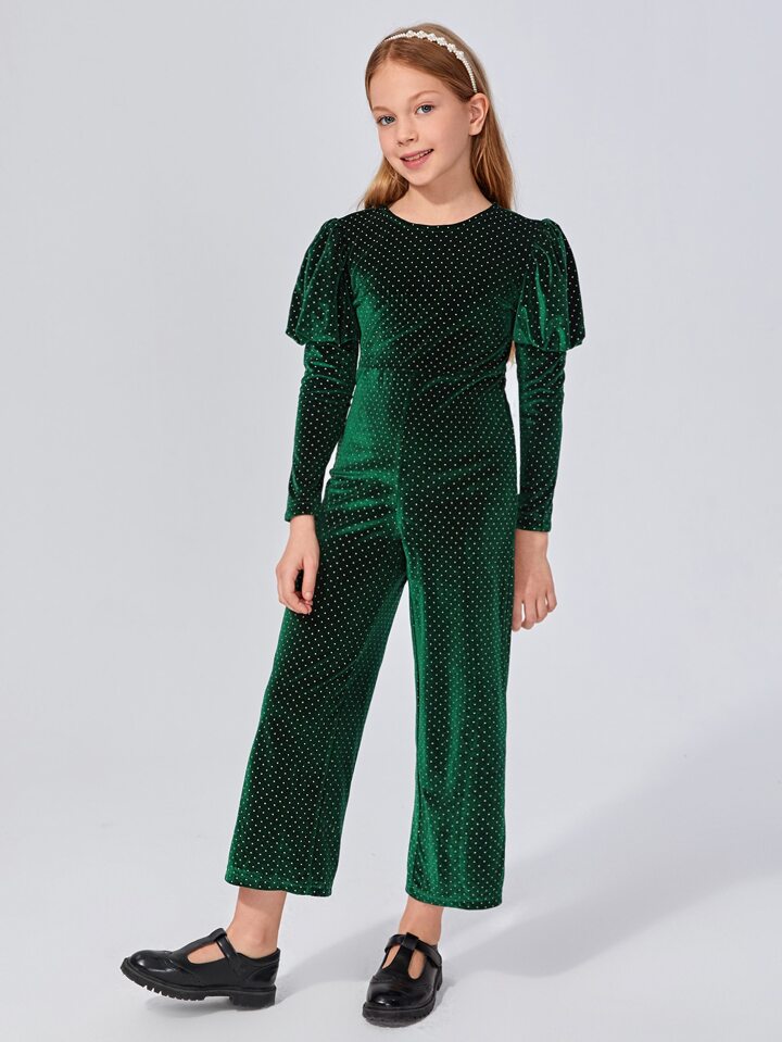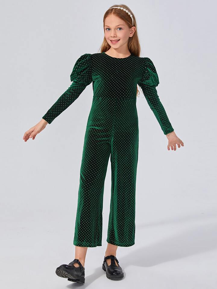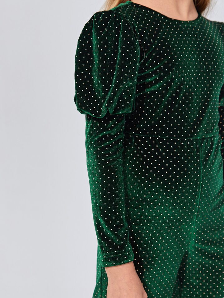 جمبسوت مخمل منقط برّاق وباكمام ساق الضان للبنات