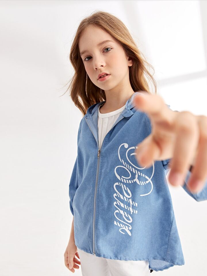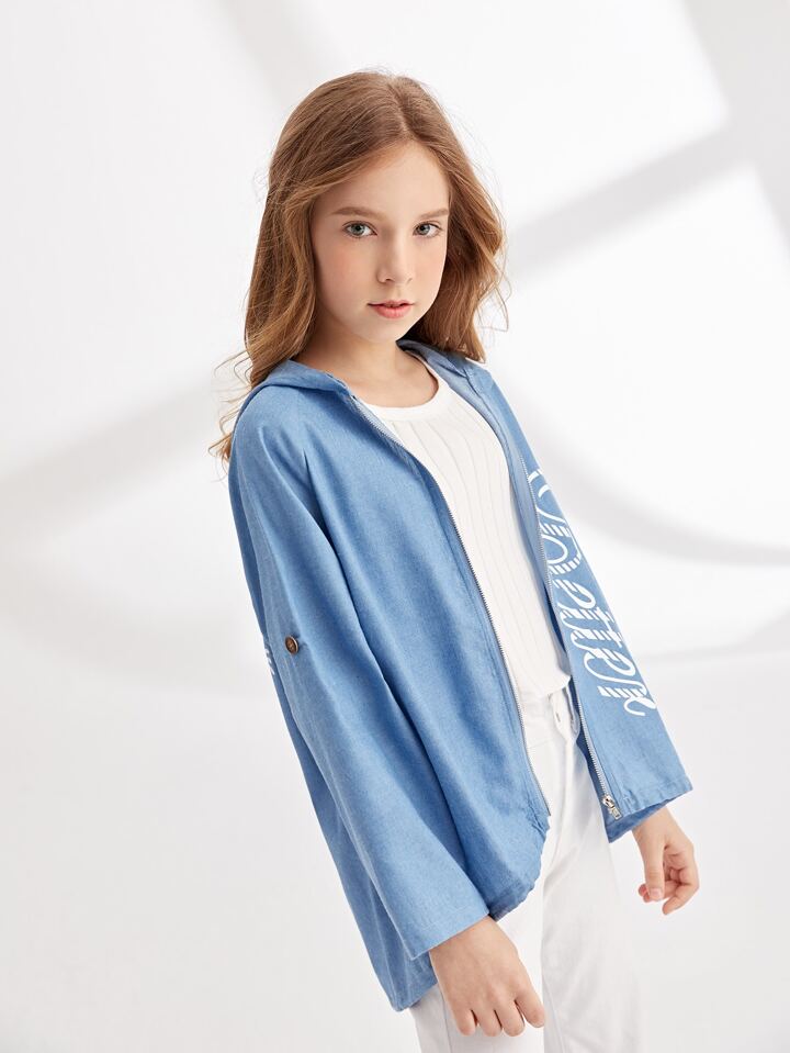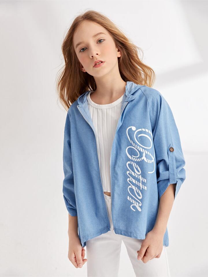 جاكيتات للبنات الزر الرباط الأعلى والأدنى سستة رسم شعار كاجوال