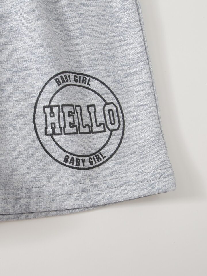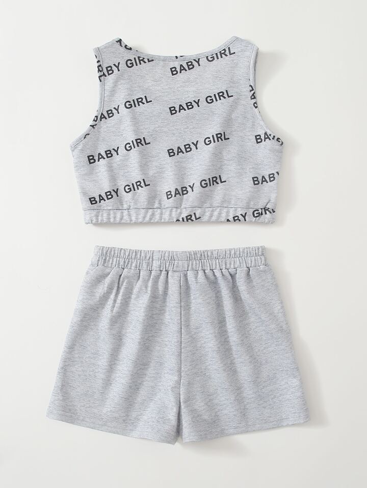 طقم سروال قصير تريك مع لباس علوي تانك بجرافيك عبارة للبنات