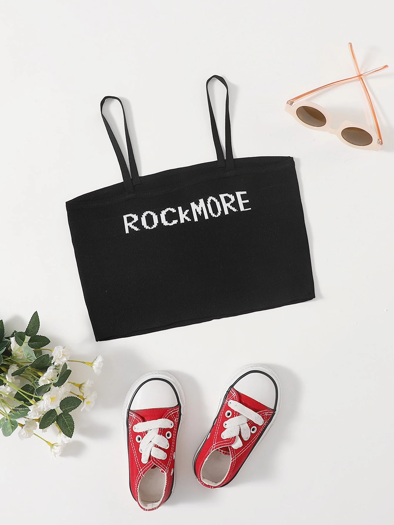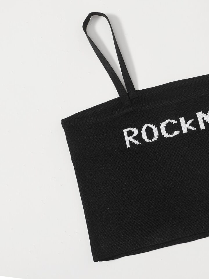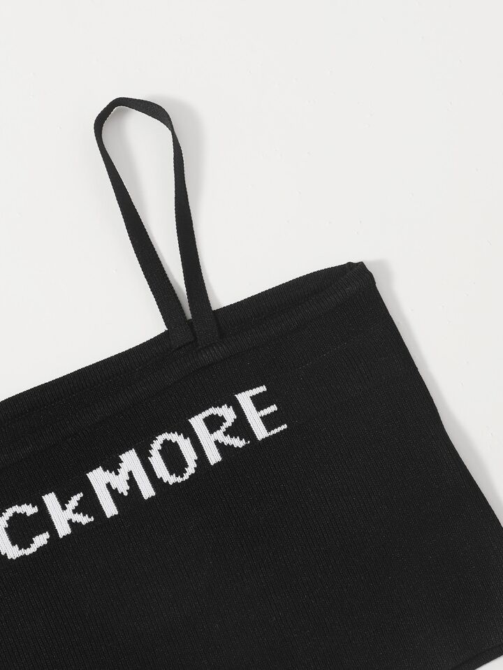 بلوزة كامي محبوك قصير بنمط عبارة للبنات