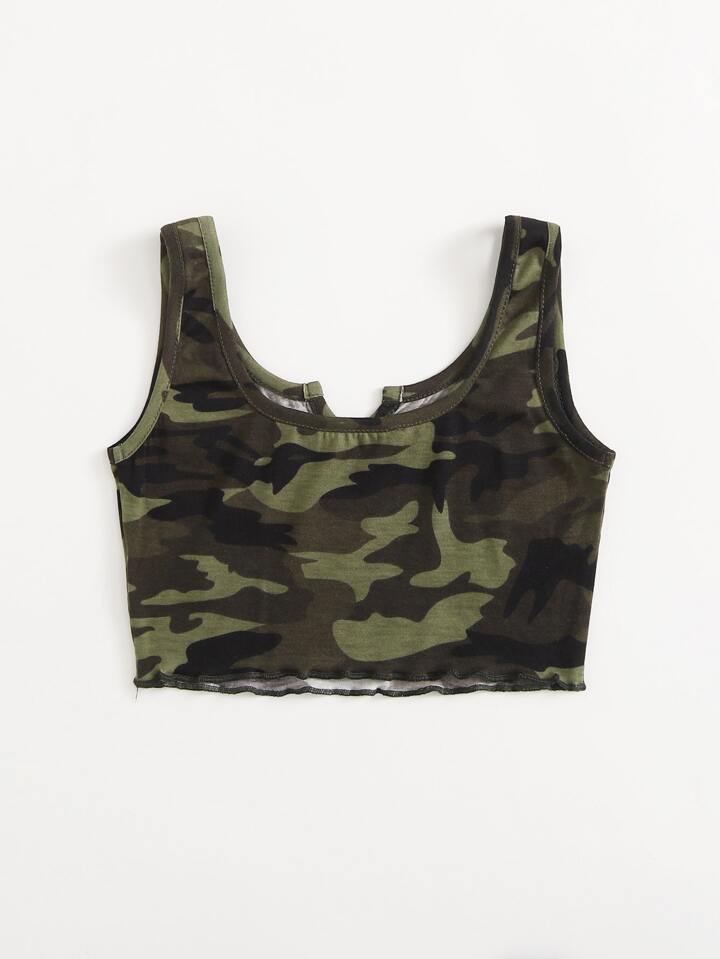 لباس علوي تانك مموه مقلم خس وبعنق مفتوح للبنات