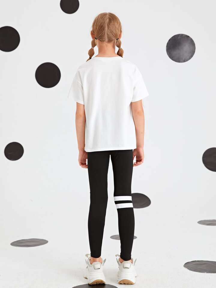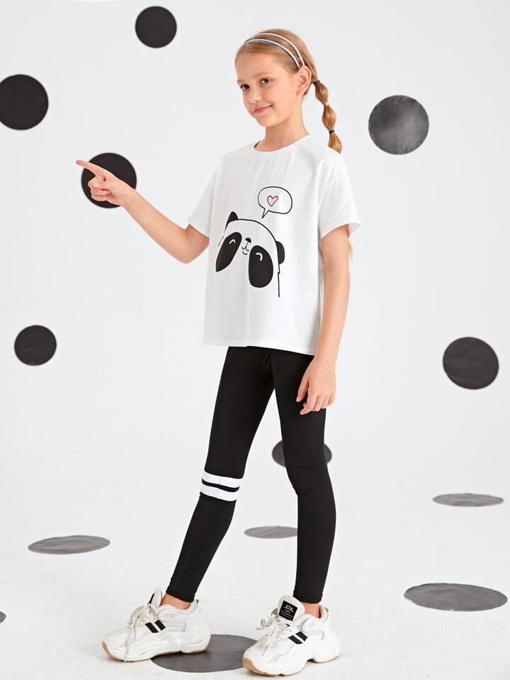 طقم طماق مخطط مع لباس علوي بطباعة باندا للبنات