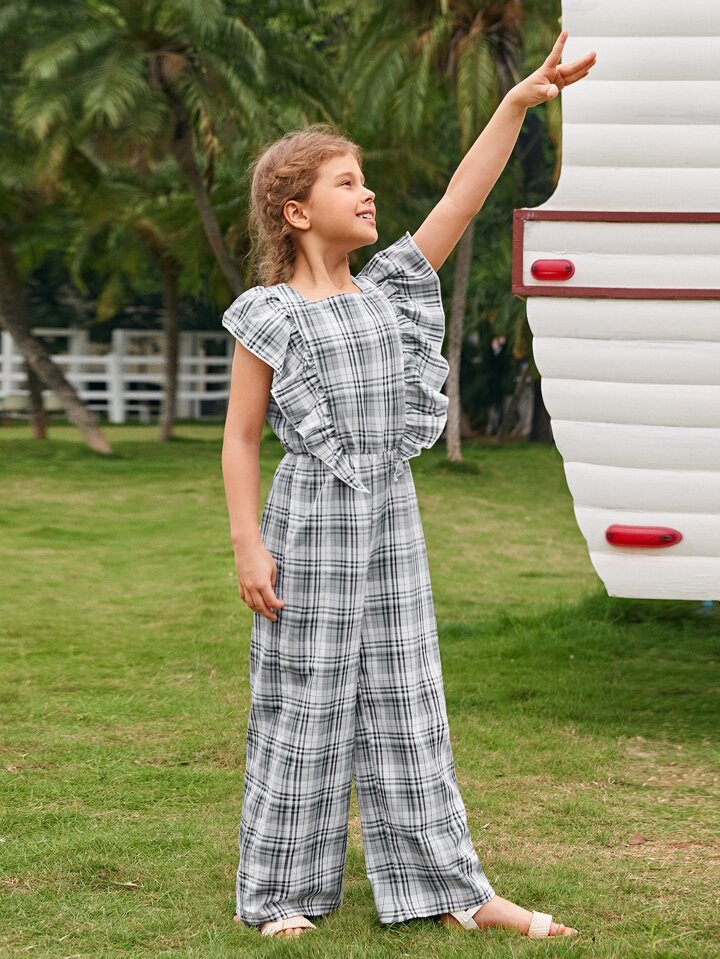 جمبسوت بلازومربع النقش بكتف مكشكش للبنات