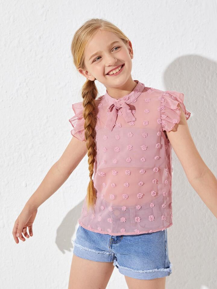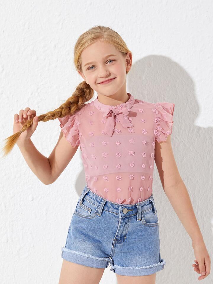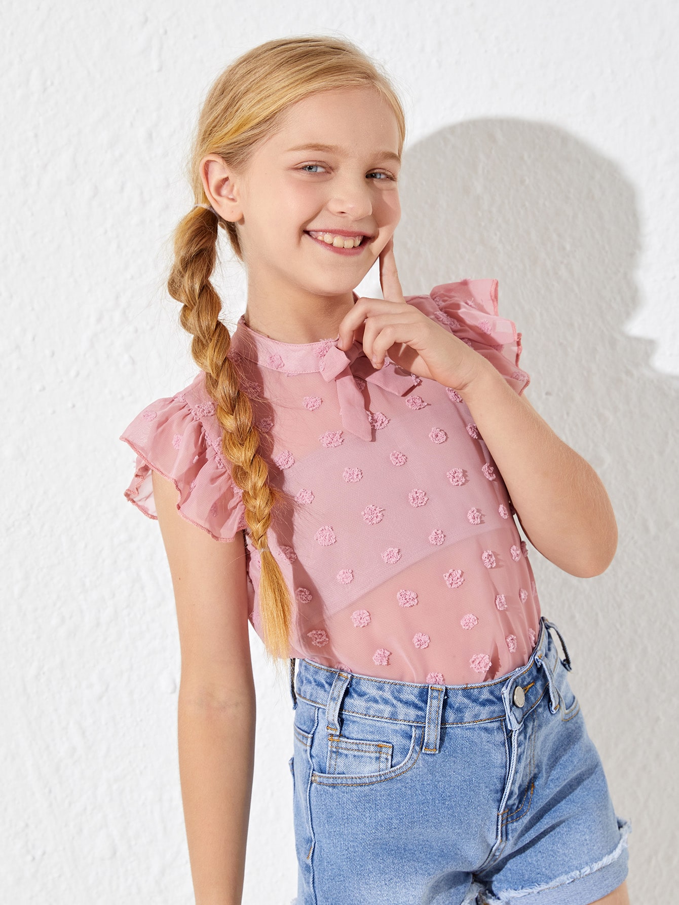 لباس علوي منقط سويسري بكتف مكشكش للبنات