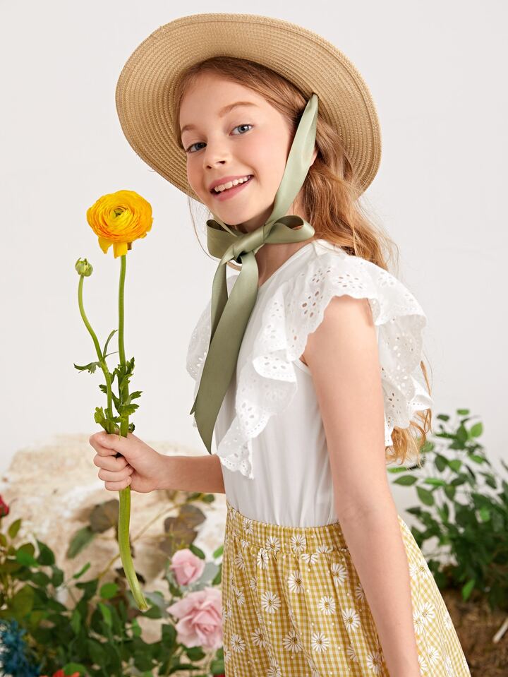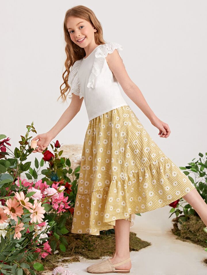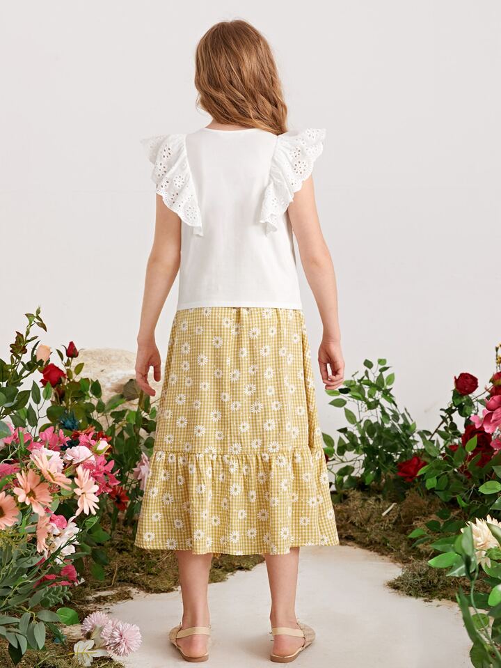 طقم تنورة قطني مقلم ومزهر مع لباس علوي مقلم مكشكش شيفي للبنات