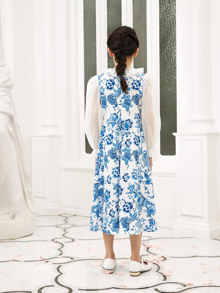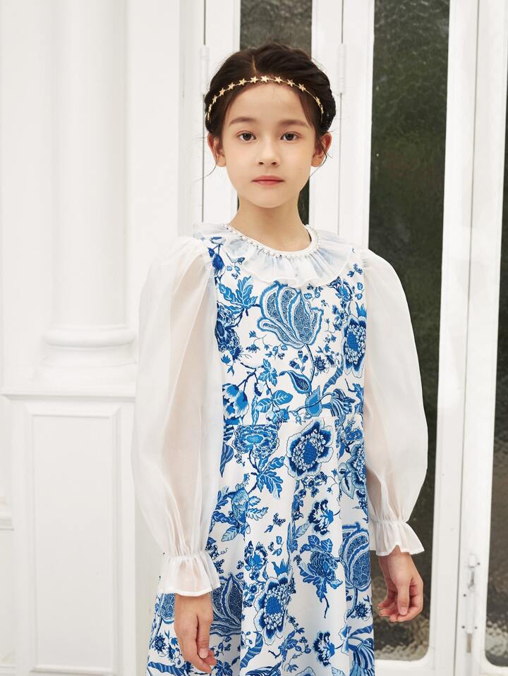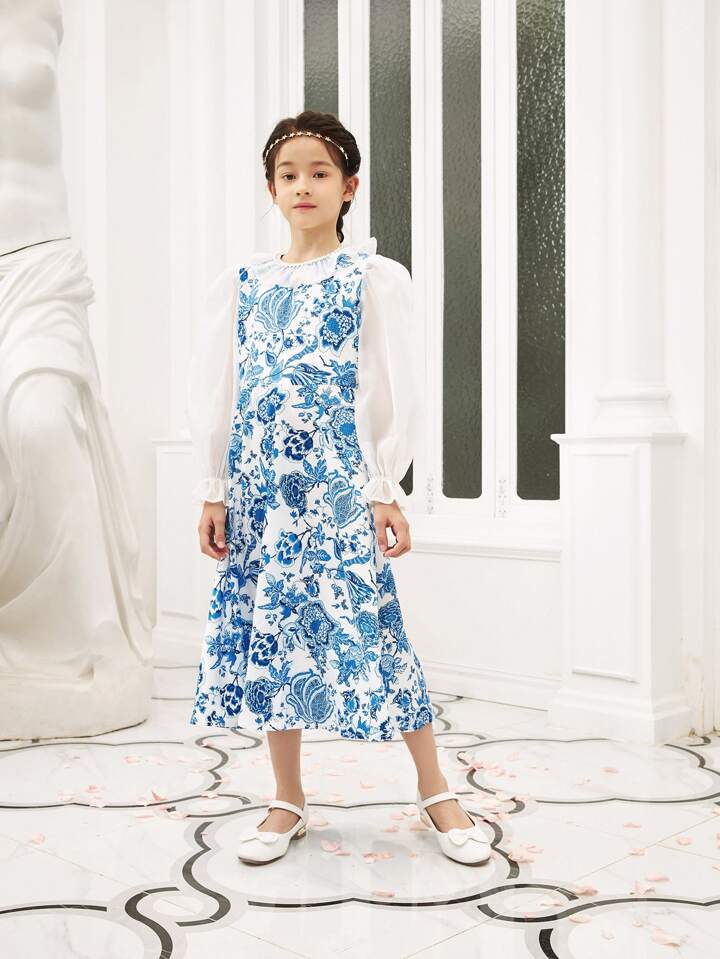 فستان بطباعة أزهار باكمام أورجانزا شفاف للبنات