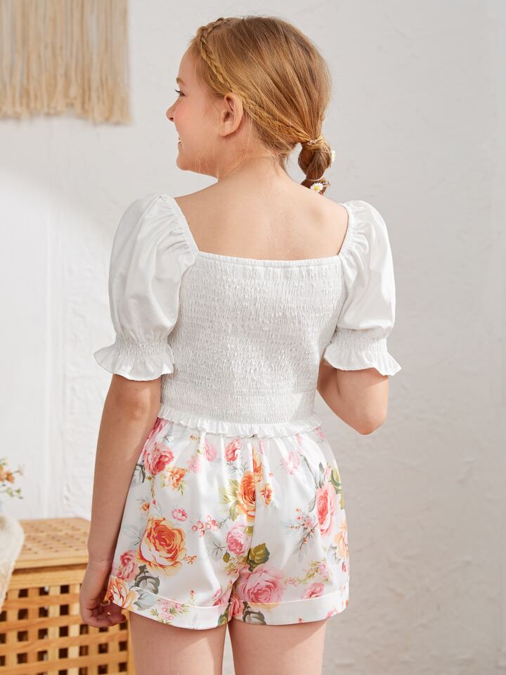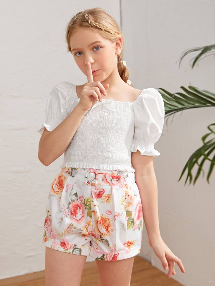 لباس علوي باكمام منفوخ معقود امامي ومدرز للبنات