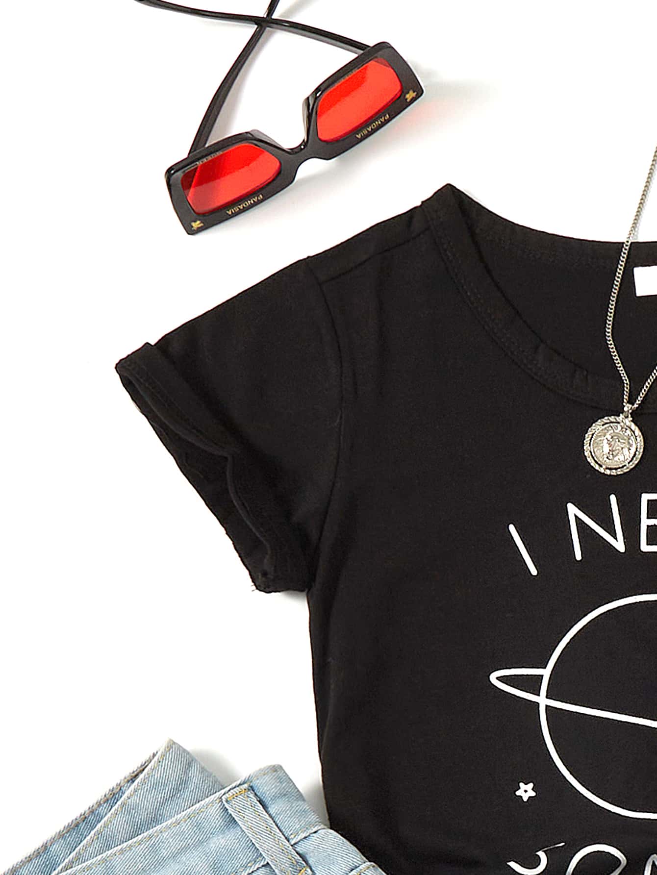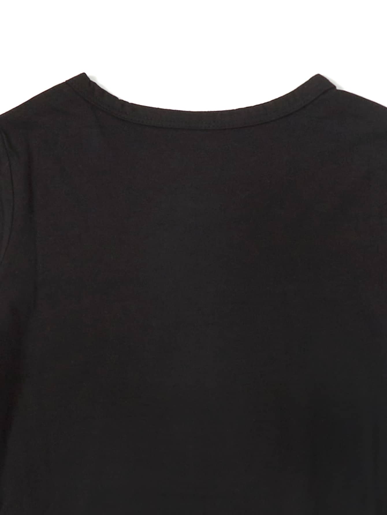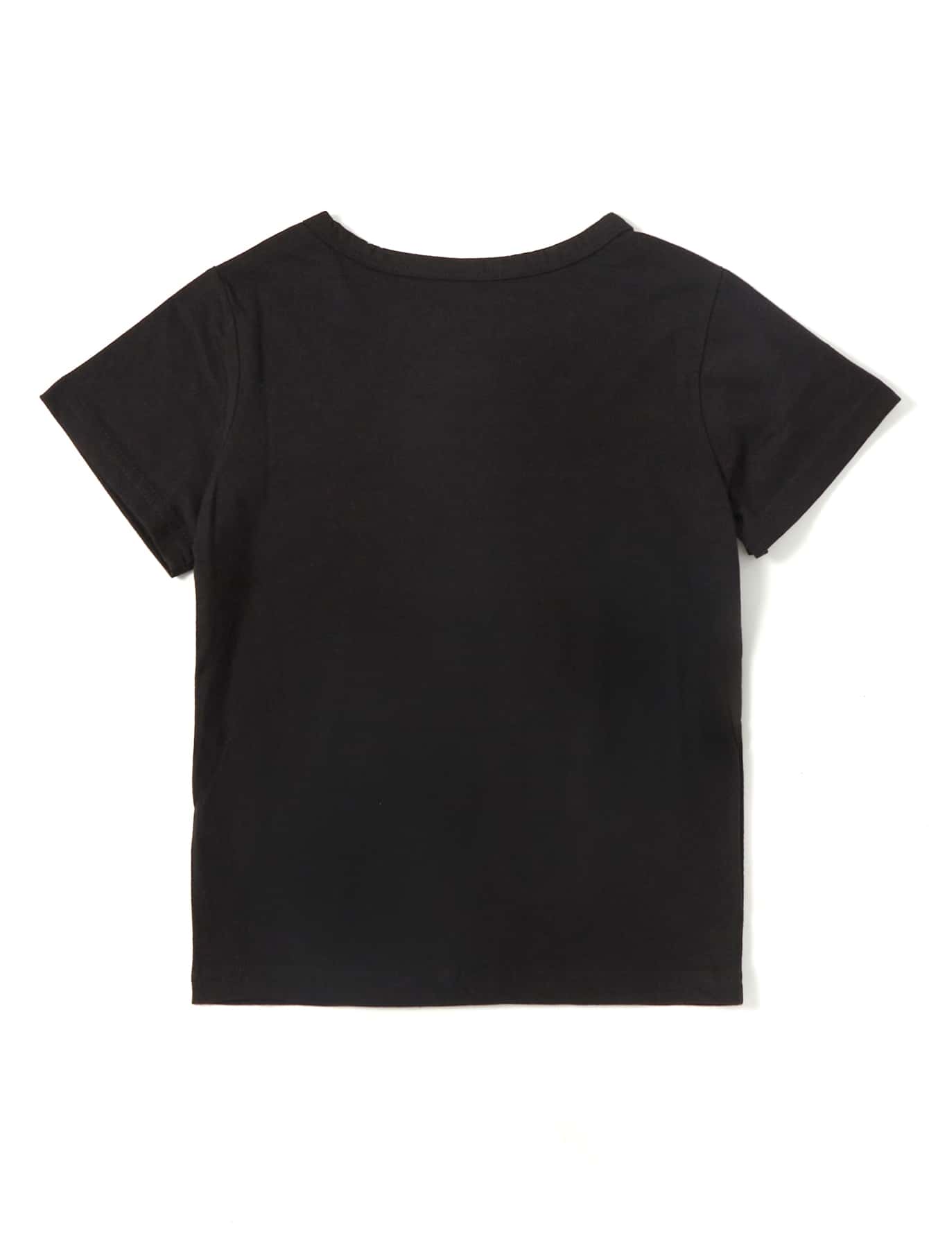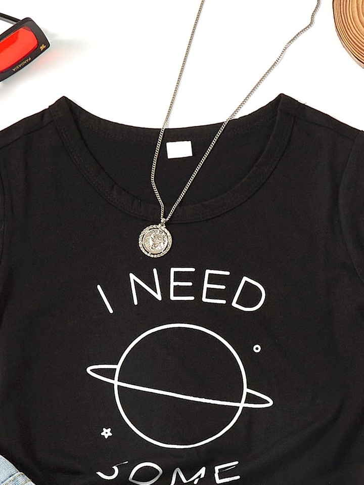 تي شيرت باكمام قصير بجرافيك شعار للبنات