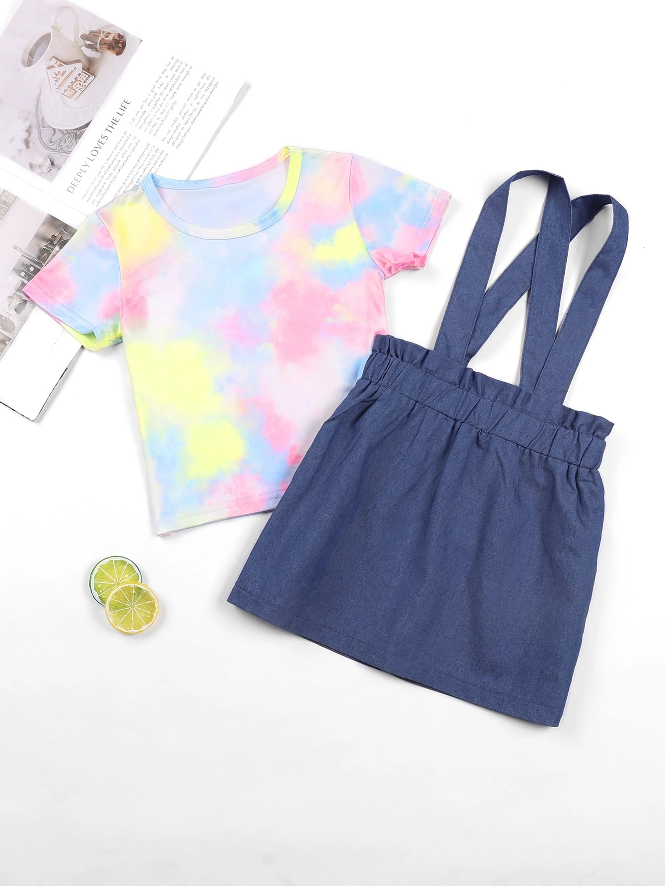 تنورة بينافور مع تي شيرت بصبغ متعادل للبنات