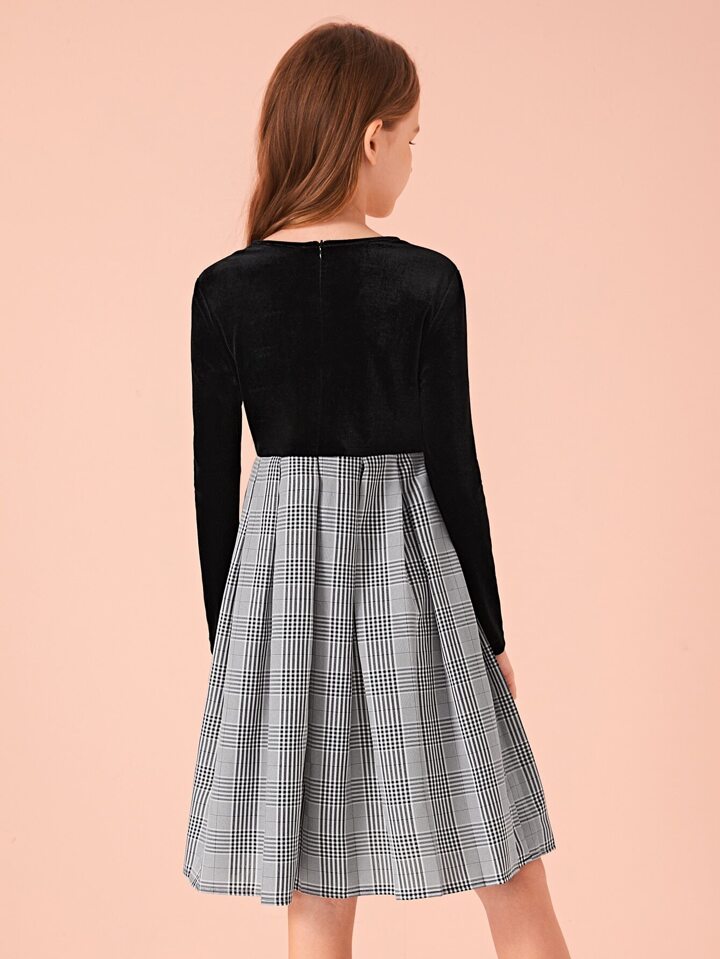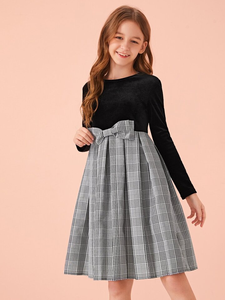 فستان كومبو مربع النقش بتفاصيل قوس مخلمي للبنات
