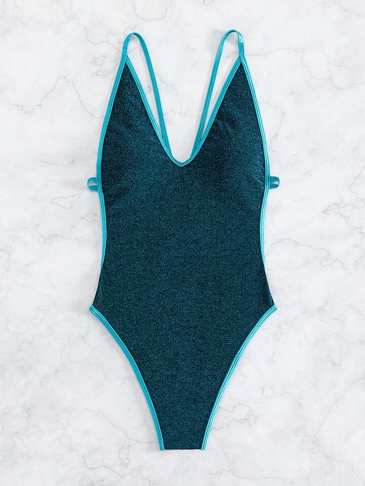 ملابس سباحة قطعة واحدة لامع شريط متباين