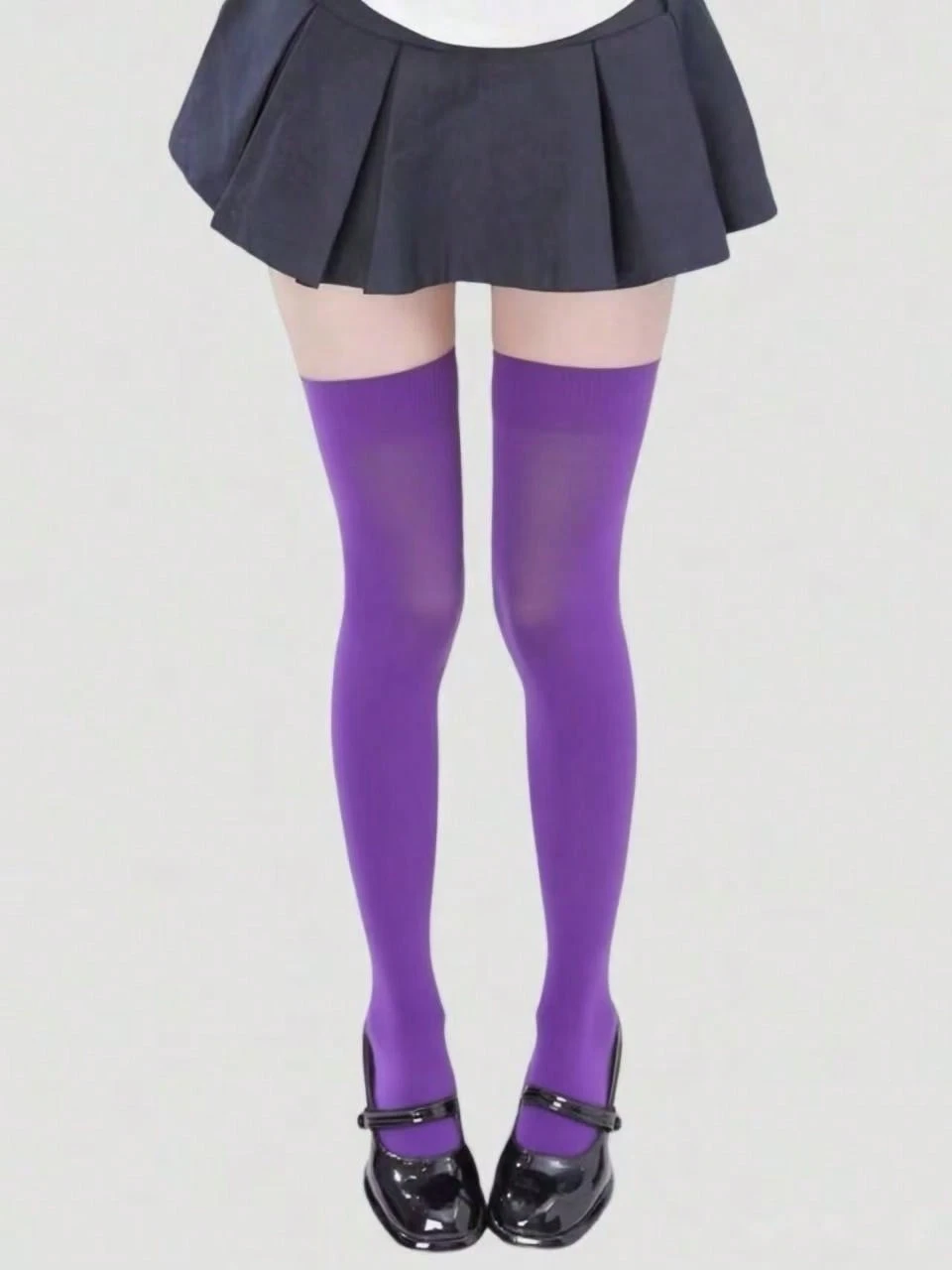 Goth زوج من الجوارب السوداء عالية المرونة للفخذ للنساء