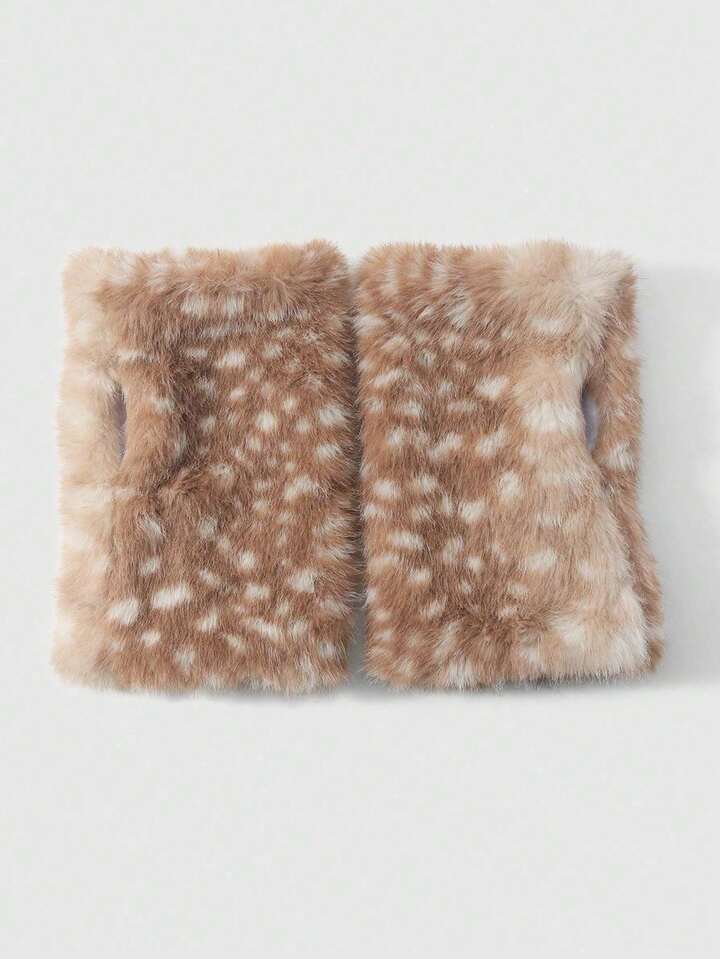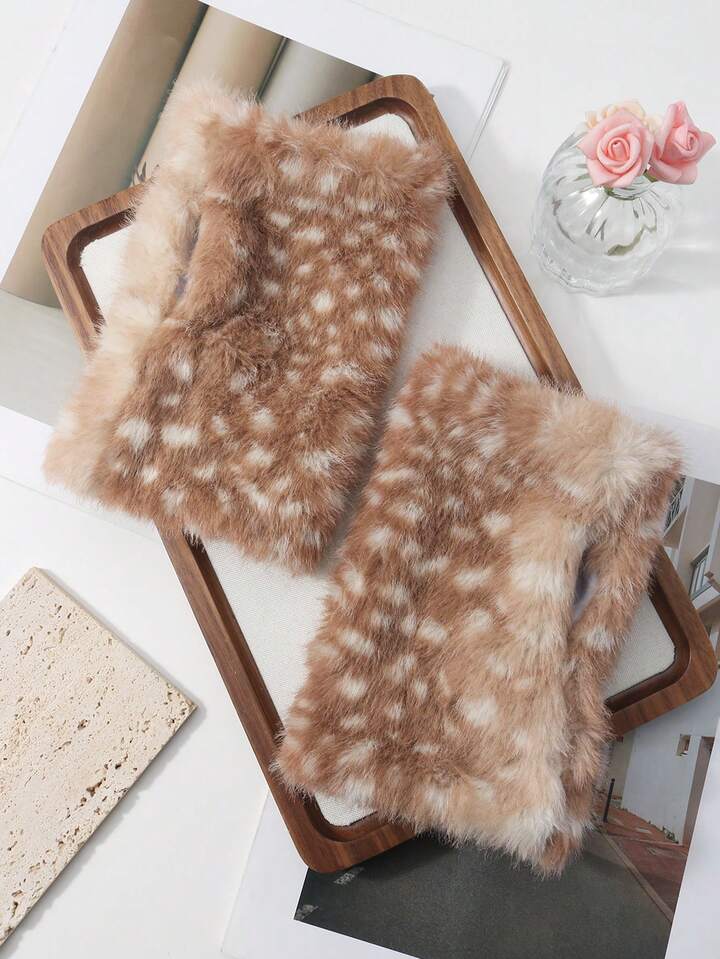 Goth زوج واحد من القفازات الكاجوال العصرية الأنيقة الجميلة الكسولة ذات الجودة العالية للخريف/الشتاء، قفازات دافئة من الفرو الصناعي بنقشة نقاط الغزال ذات تدرج اللون، قفازات بدون أصابع، مناسبة للملابس اليومية للنساء، هدية عيد