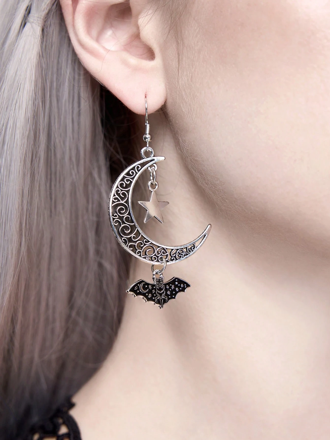 Goth زوج من أقراط قطرة بتصميم القمر والنجوم بطراز بانك، مثالية للارتداء اليومي وحفلات المناسبات