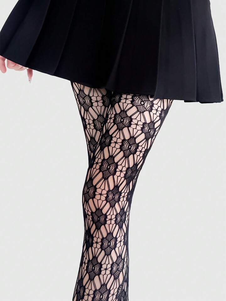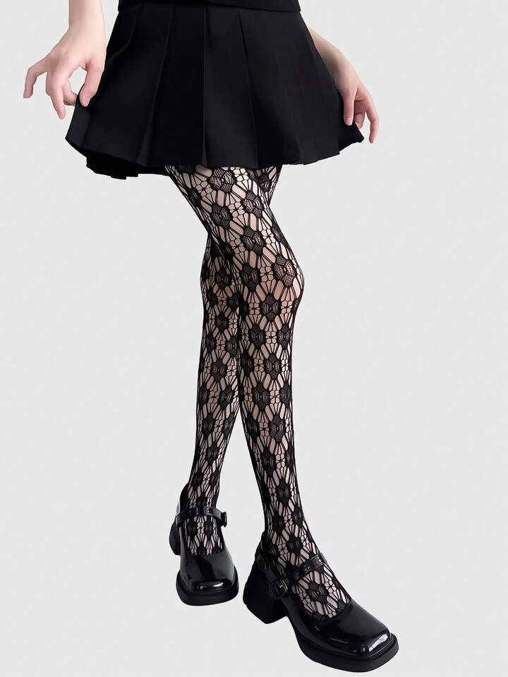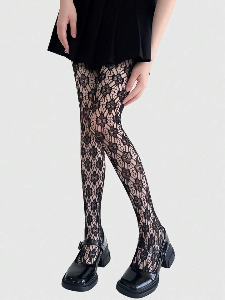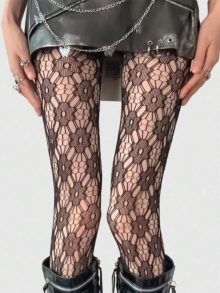 Goth زوج جوارب طويلة أنثوية ذات نمط شبكي من الدانتيل والوبر المزخرف