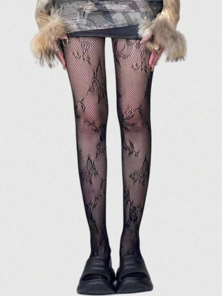 Goth زوج من جوارب شبكية بتصميم فراشة داكنة للنساء، مناسبة لكل المواسم