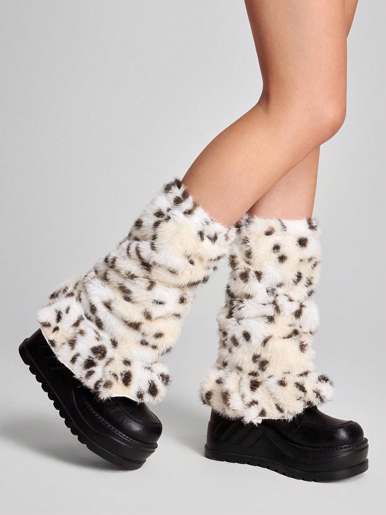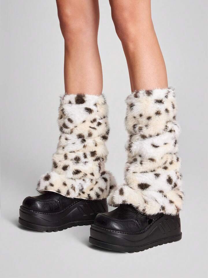 Goth زوج من جوارب الساق الدافئة والفضفاضة ذات النقشات البيضاء والبنية والنمر والغزلان، من نوع الدانتيل عالي الجودة، مناسبة للنساء والفتيات للاستخدام اليومي، هدية عيد