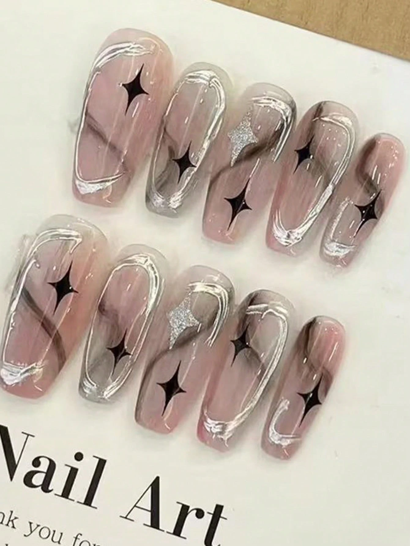 Goth 10 قطع طويل نعش نمط النجوم أظافر اصطناعية عدة