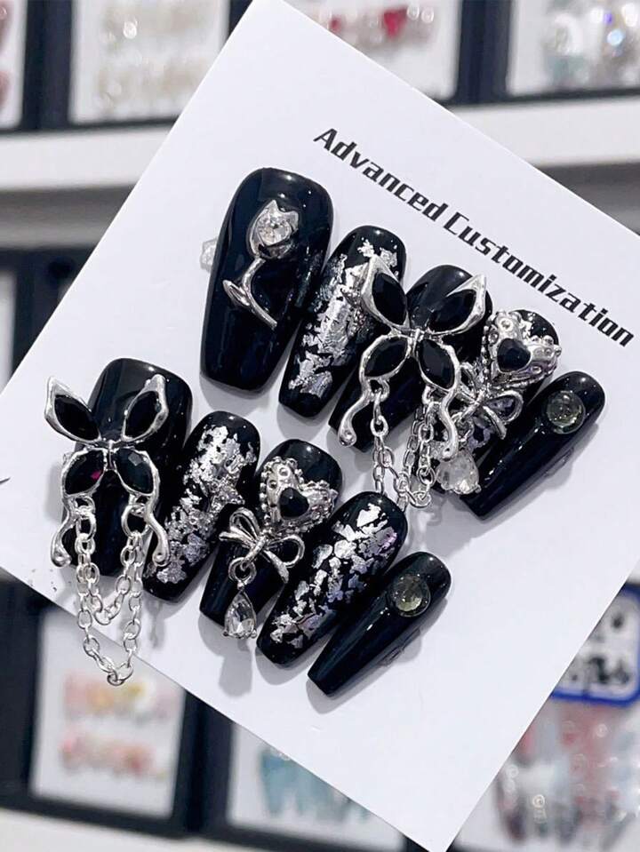 Goth الأظافر الزائفة طويل اظافر مع مظلم ليلة بتصميم فراشة , مع هلام صمغ 10 قطع