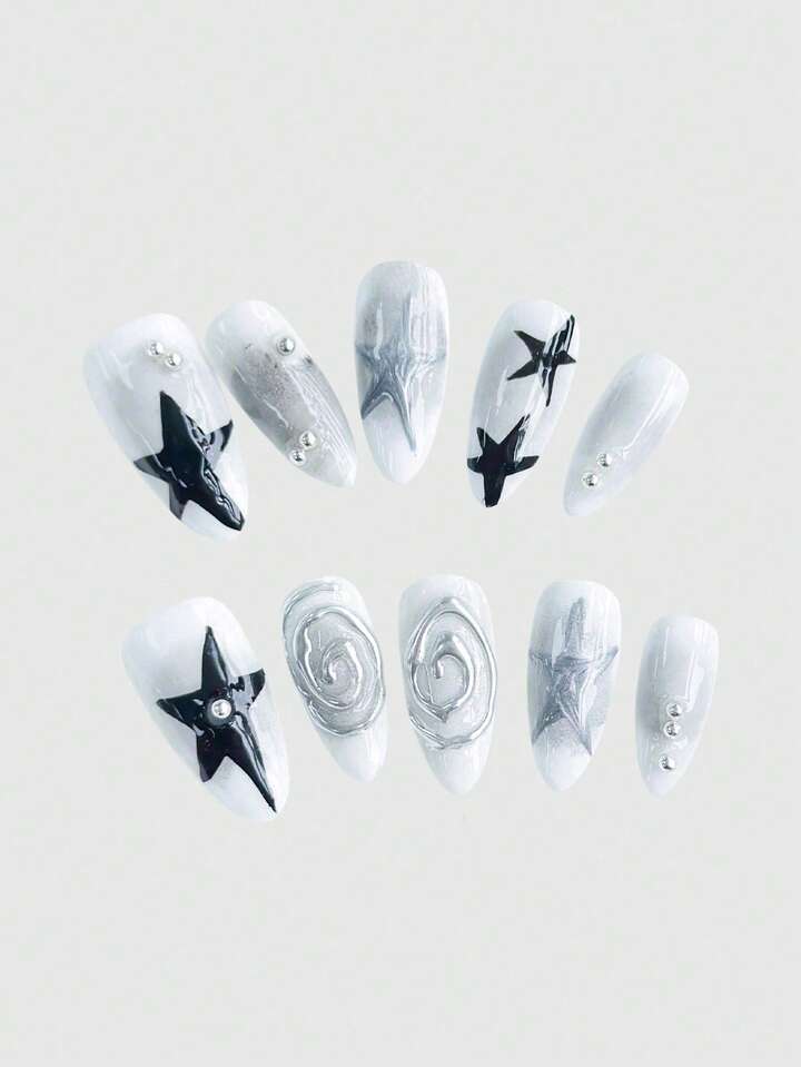 Goth 10pcs Punk Style Unique And Unconventional 5-Pointed Star Screw Nail Art Decorations With 3pcs Self-Adhesive Double-Sided Tape