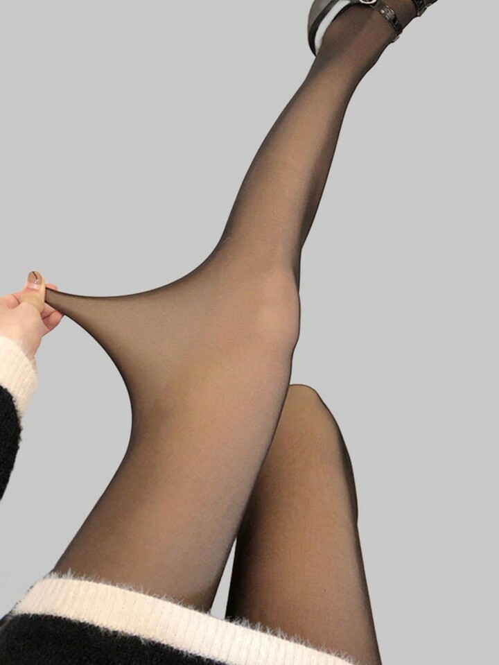 Goth زوج من جوارب نسائية 200جم شفافة مقلدة مبطنة بالحرارة للخريف/الشتاء