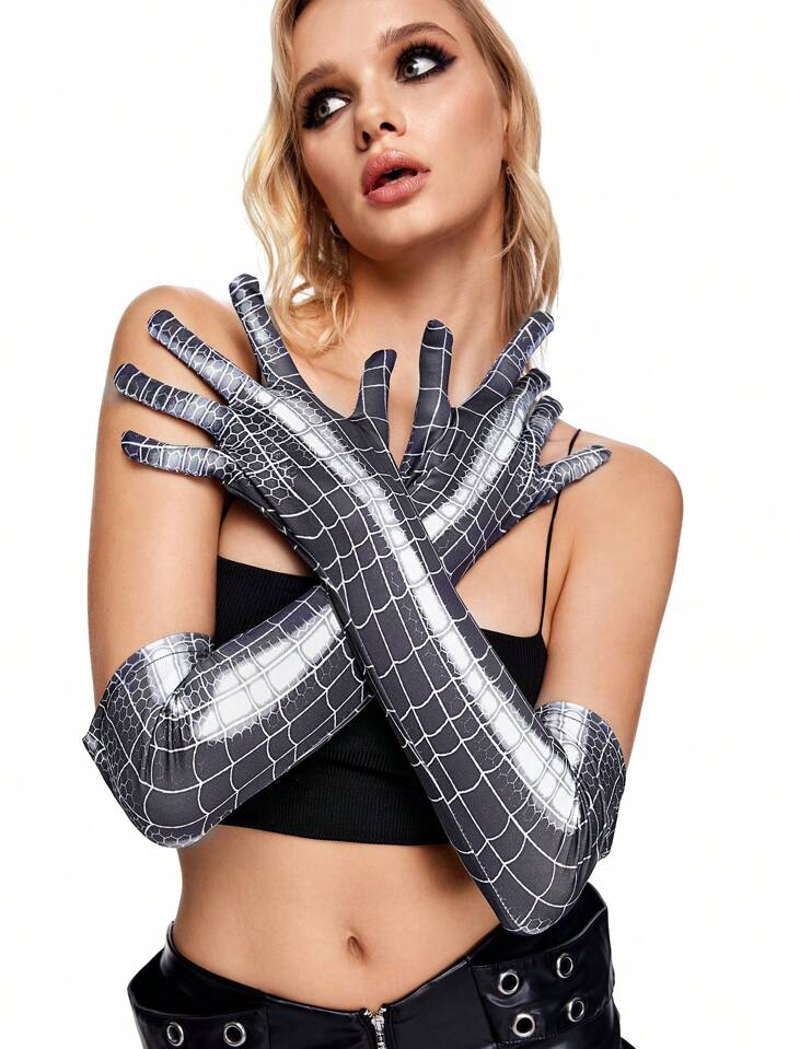 Goth 1زوج أكمام ذراع عنكبوت مخصصة باللونين الأسود والرمادي للنساء لمناسبة عيد الهالوين