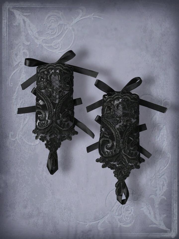 Goth قفازات بدون اصابع مطرز بأزهار زوج واحد نساء