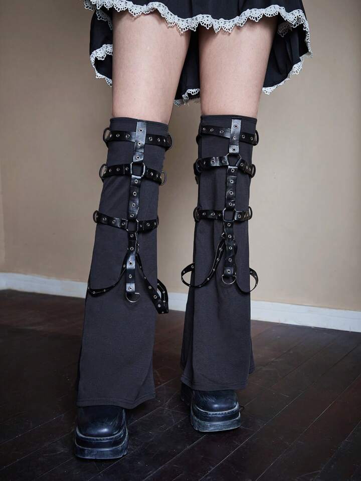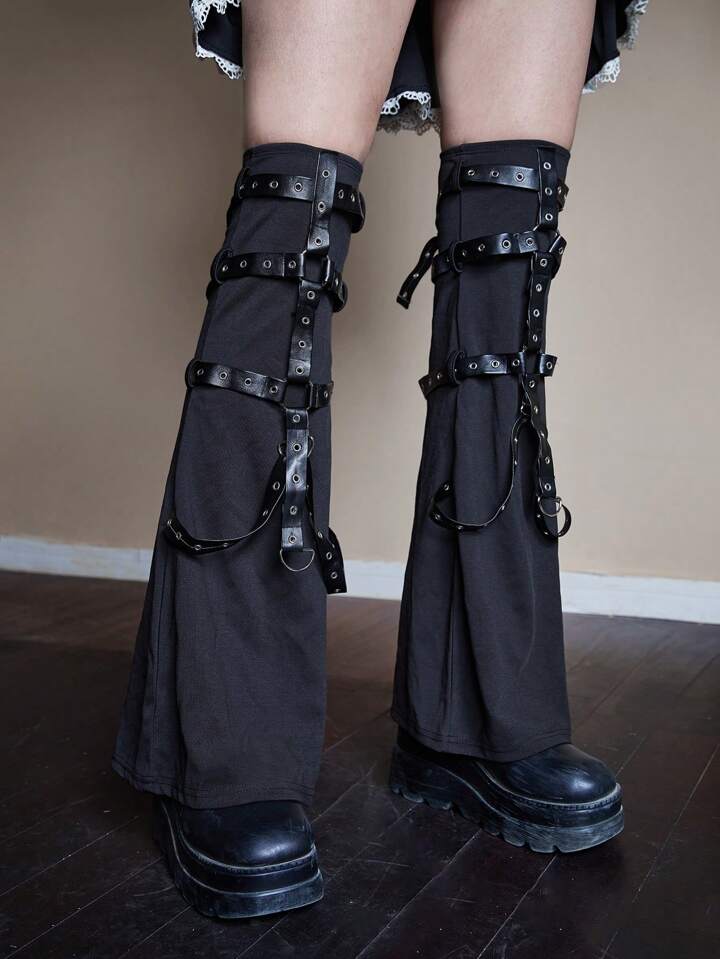 Goth مسخن ساق فتحات حلقي معدني و بديكور دائري البونك الزخرفة اليومية زوج واحد نساء