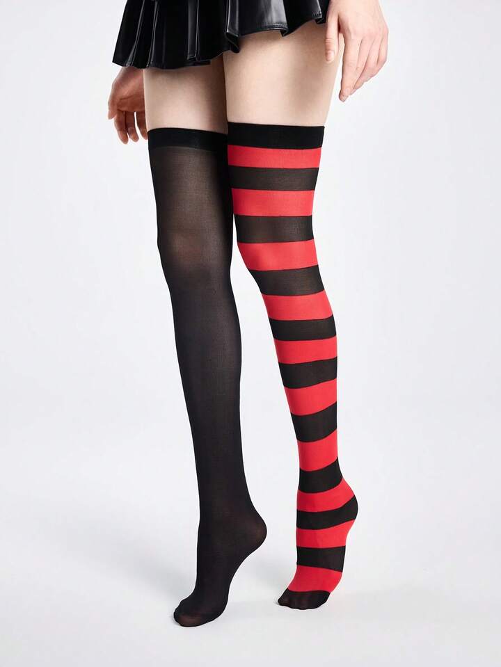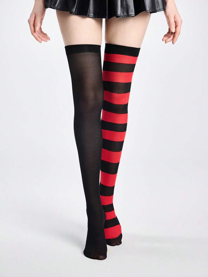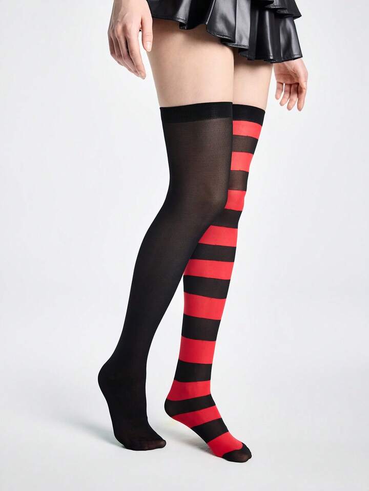 Goth زوج من الجوارب فوق الركبة للنساء بنمط القلب والمربعات