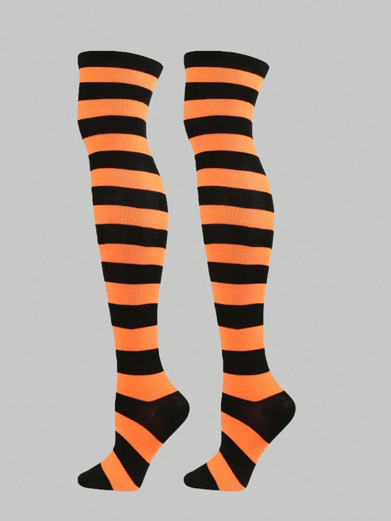 Goth جوارب للركبة نمط مخطط زوج واحد نساء