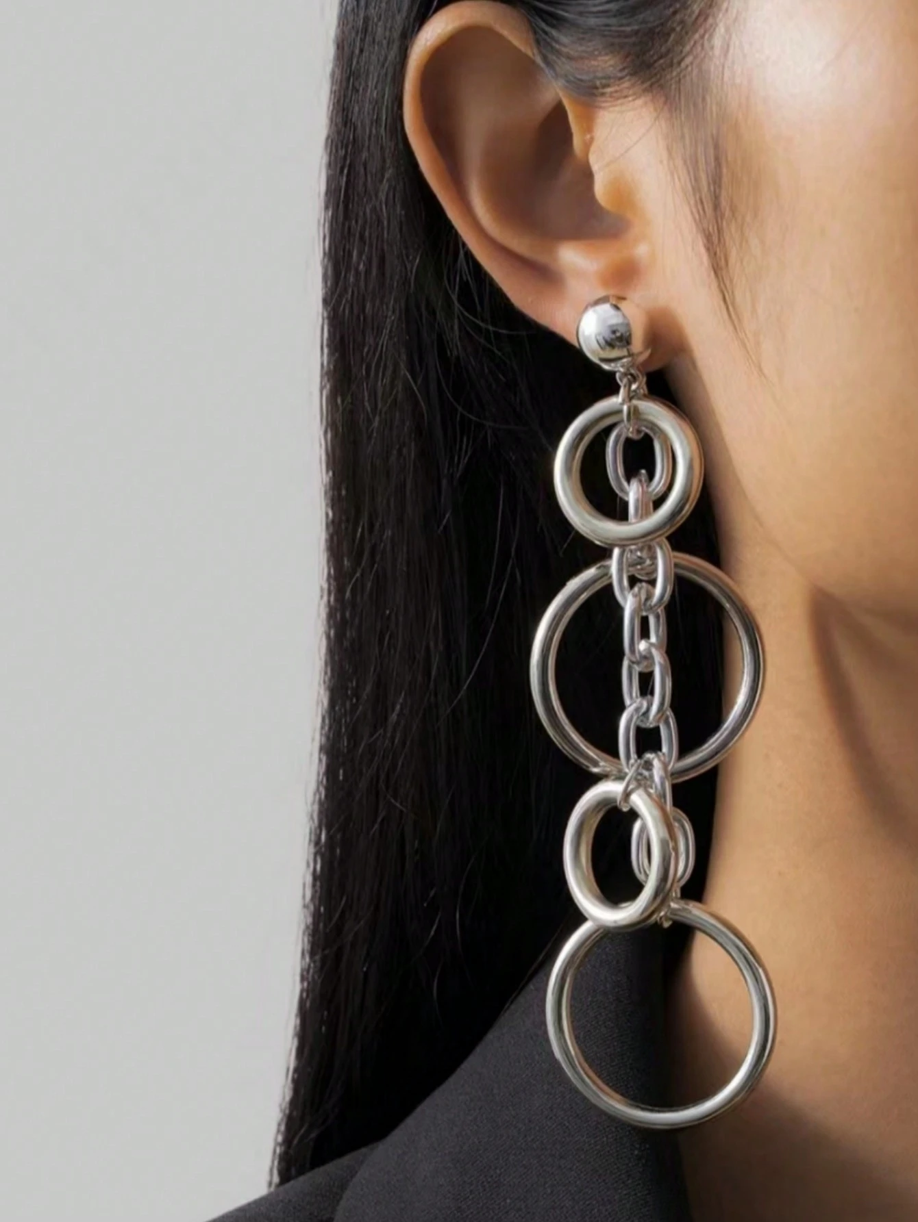 Goth زوج واحد من قطرات الأذن النسائية البسيطة على شكل سلسلة ودائرة