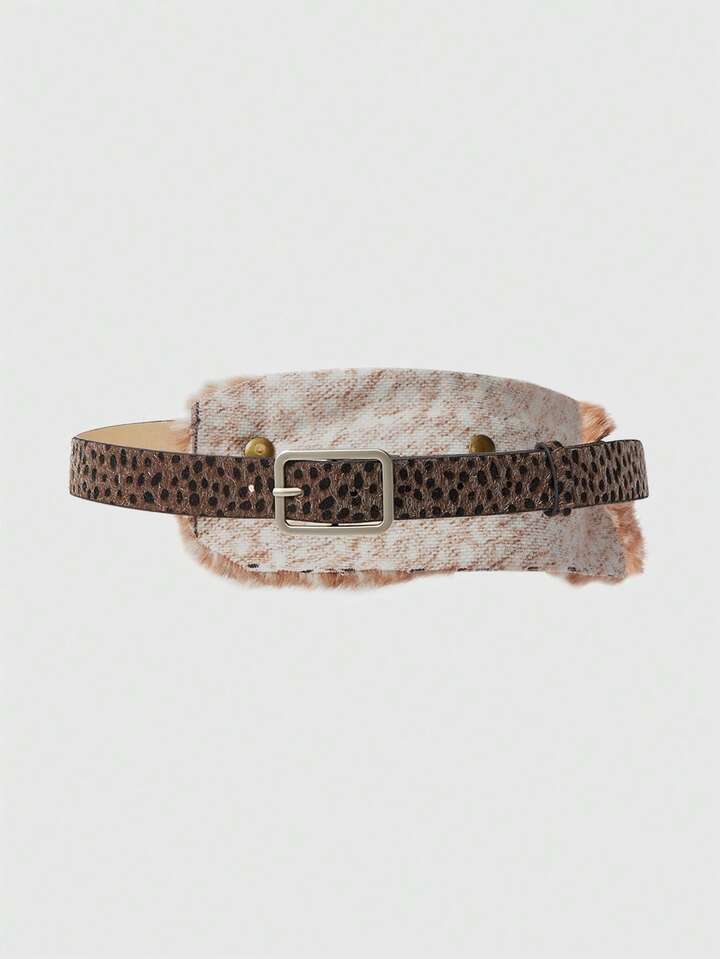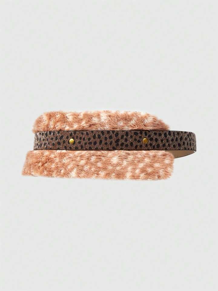 Goth 1 قطعة حزام سيدات متعدد الاستخدامات مزين بالنقوش الحيوانية والرقع والدبابيس، مناسب للمدرسة والكاجوال والسفر والموضة الشتوية وكهدية عيد الميلاد، بطبعات الغزال والنمر والبقر البني