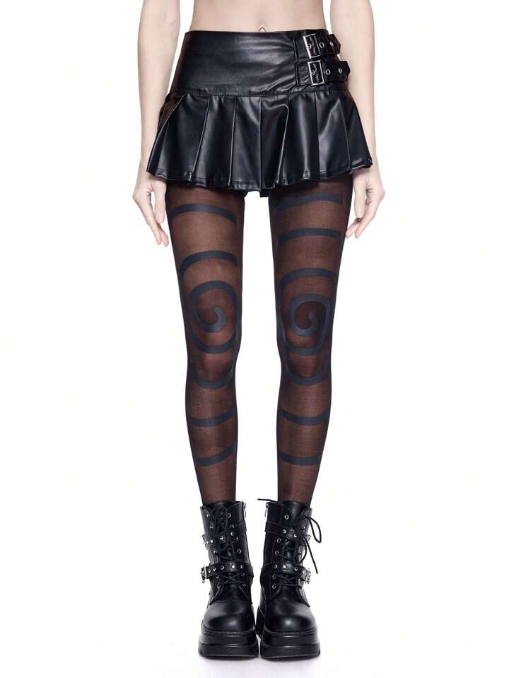 Goth 1 قطعة بنطلون ضيق/جوارب ذات نمط حلزوني خلاق، مناسب للارتداء مع التنانير