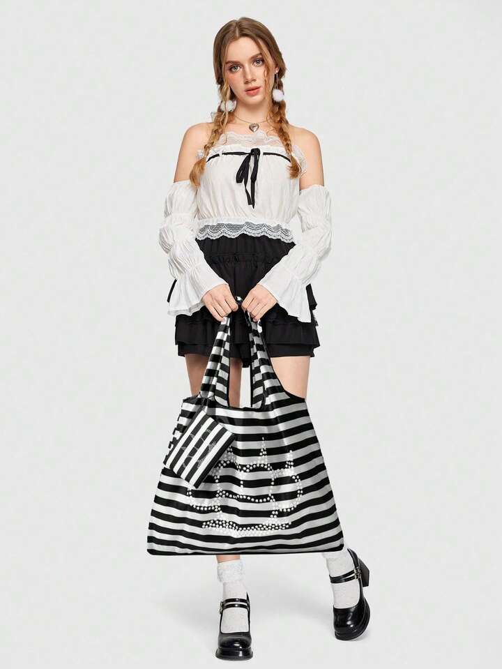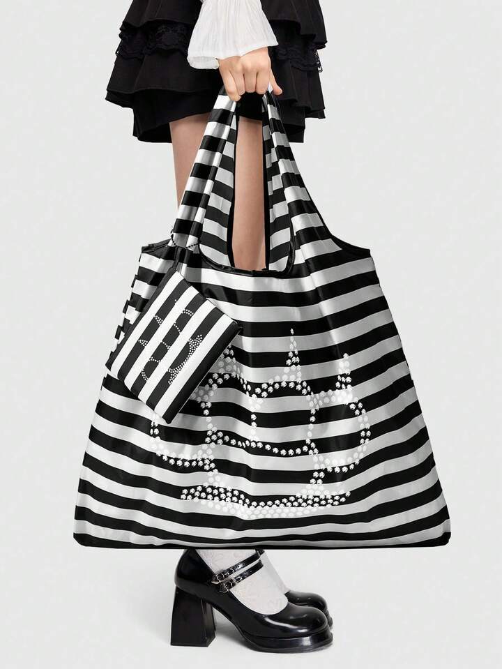 Goth 1 قطعة حقيبة تخزين ذات شكل عين مزخرفة بنقوش فلكية، حقيبة تسوق قابلة للطي ذات سعة كبيرة مع محفظة صغيرة