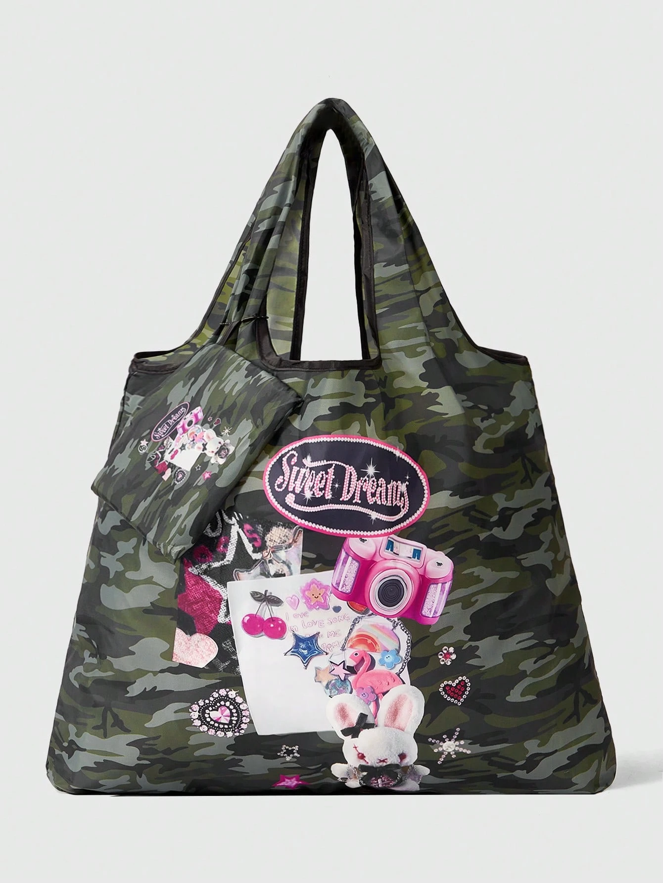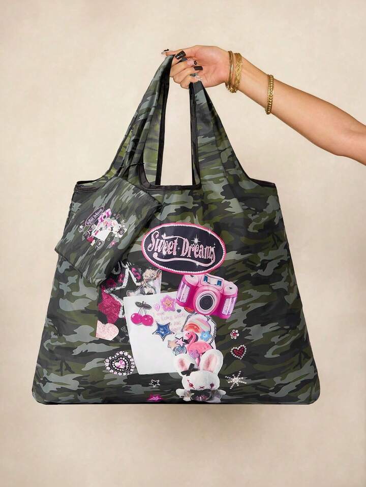 Goth 1 قطعة حقيبة تخزين ذات شكل عين بتصميم سماوي عصري، حقيبة تسوق قابلة للطي ذات سعة كبيرة مع محفظة صغيرة