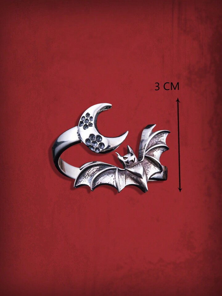 Goth خاتم مفتوح جبان سبائك الزنك خفاش & مزخرف بقمر للنساء الزخرفة اليومية قطعة واحدة