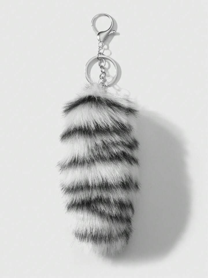 Goth قطعة واحدة من سلسلة مفاتيح أو تميمة حقيبة على شكل ذيل حيوان من الفرو الصناعي ذو طراز كوري عتيق أنيق وبسيط باللونين الأبيض والأسود، هدية مثالية للنساء والسيدات للاستخدام اليومي أو كهدية عطلة