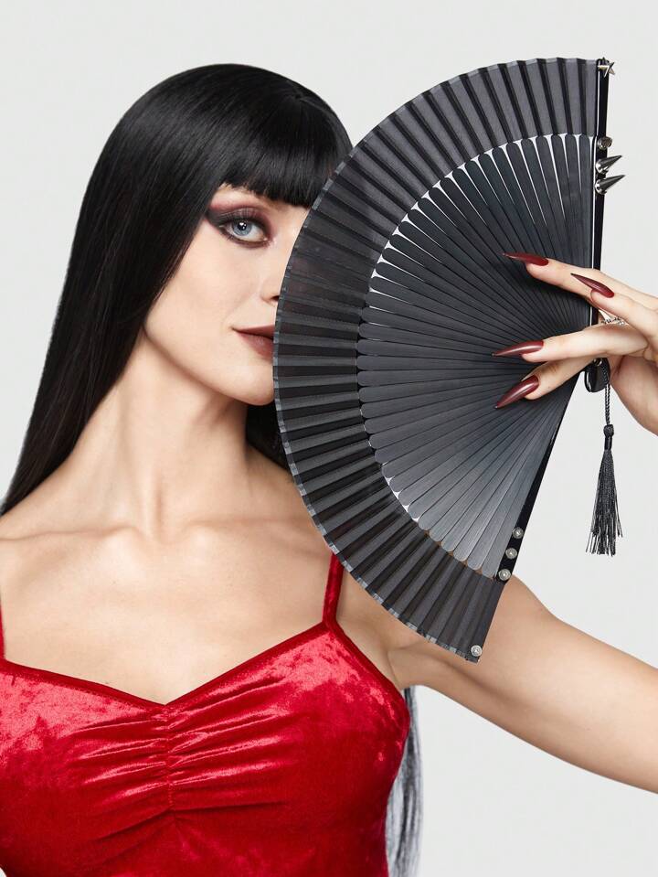 Goth مروحة قابلة للطي مرصعة مزخرف بشرابة لون مختلطة قطعة واحدة