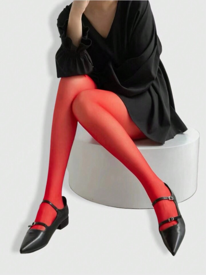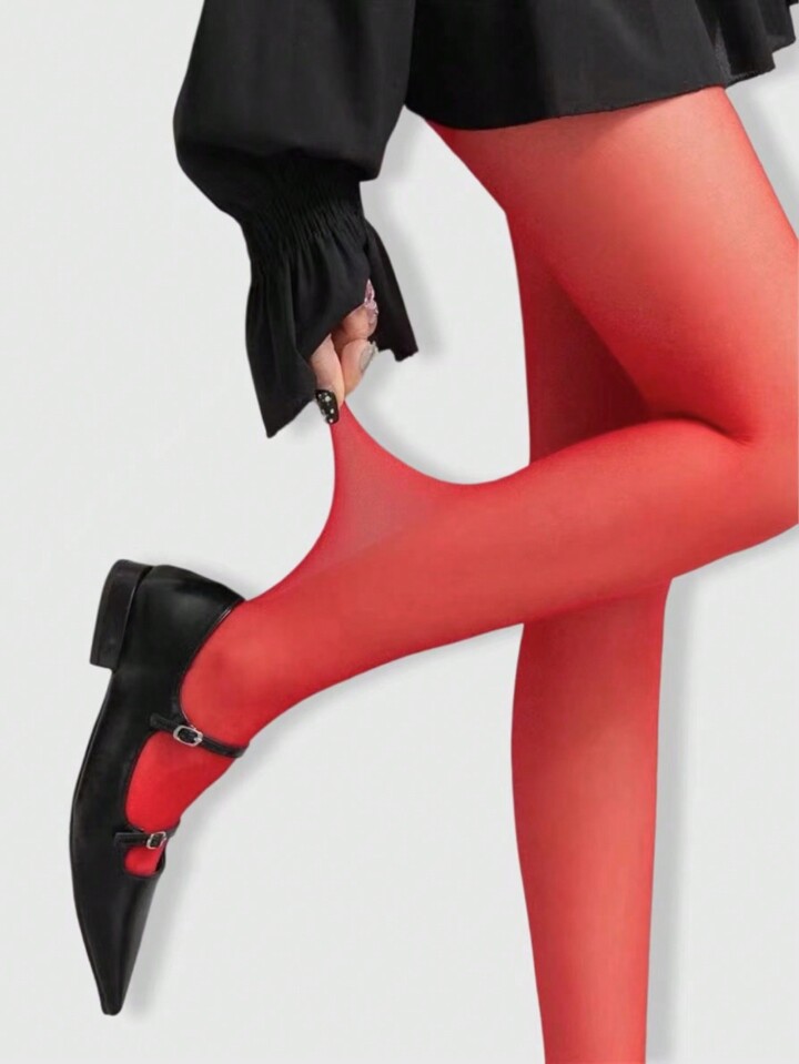 Goth قطعة واحدة جوارب طويلة رقيقة وشفافة للنساء بلون أحمر جذاب