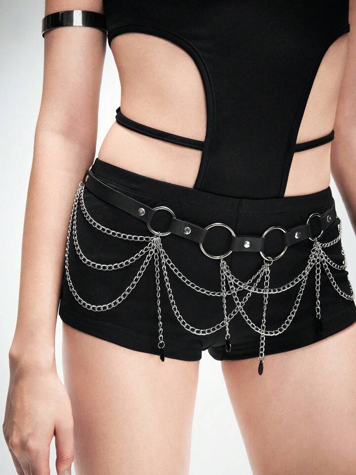 Goth 1 قطعة سلسلة حزام النساء المرصعة بالكريستال باللون الأسود بطراز بنكي، إكسسوار متعدد الاستخدامات للفساتين