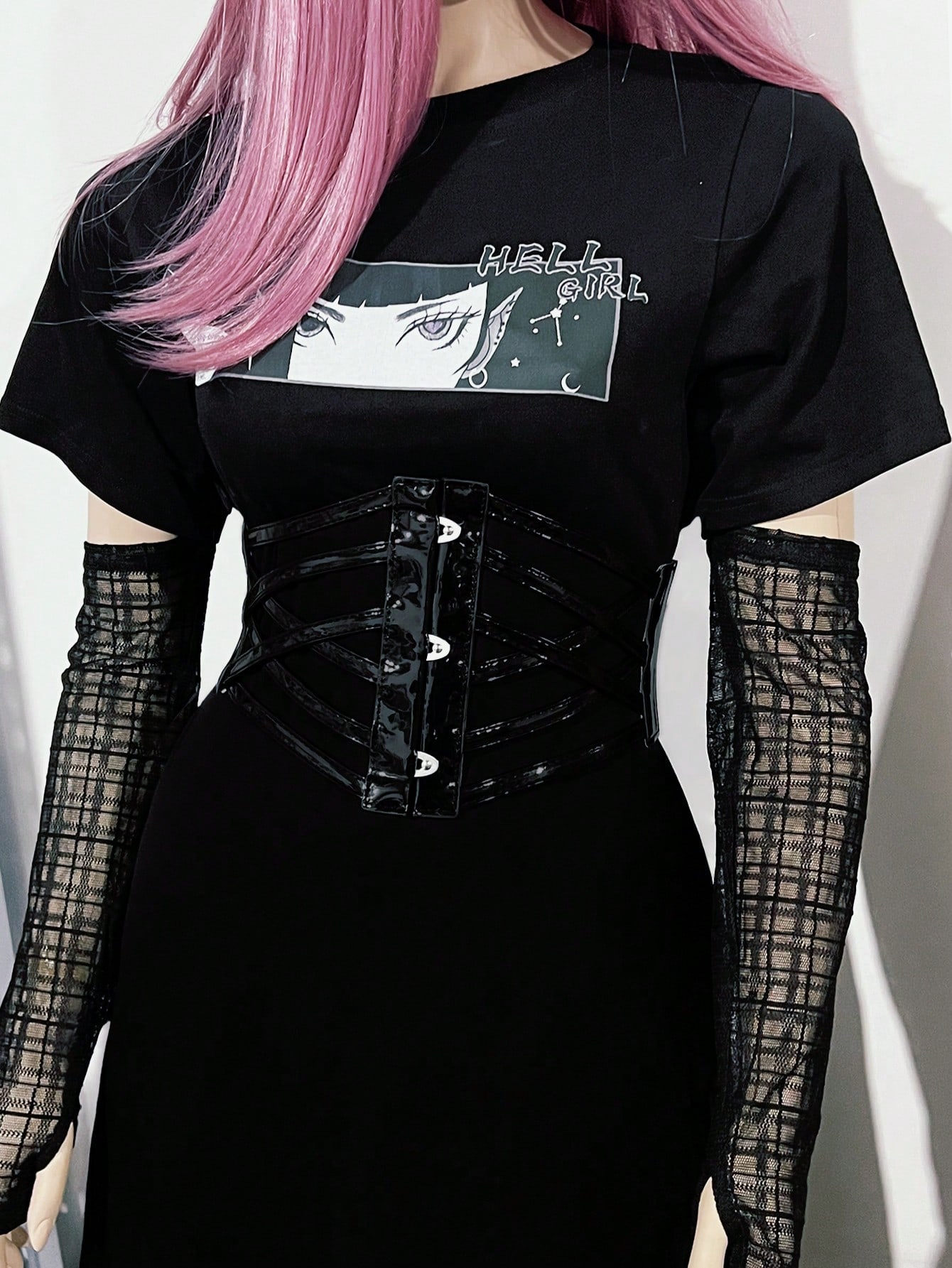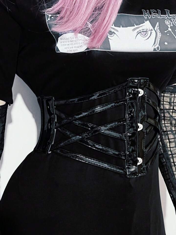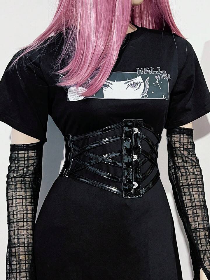 Goth فستان نسائي بربطة على الخصر وتفاصيل مثقوبة
