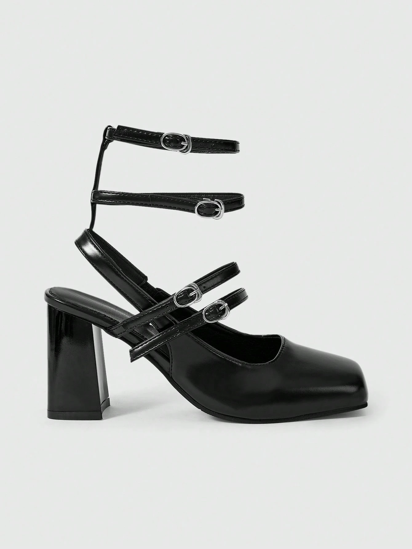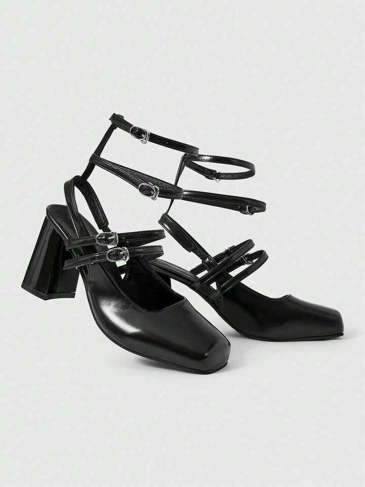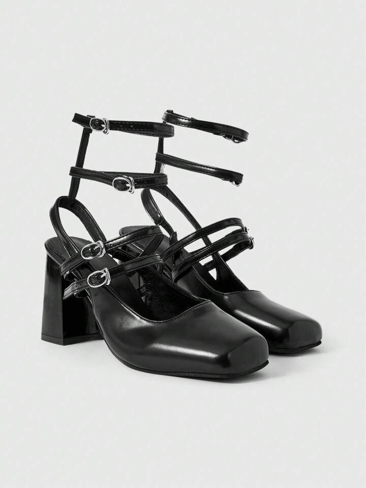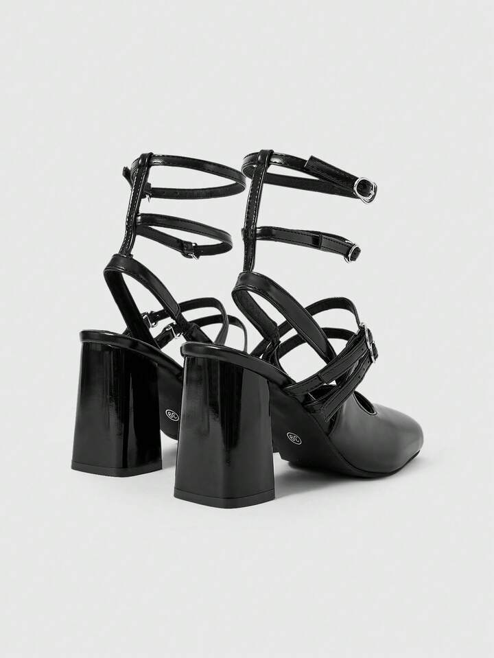 Goth صنادل نسائية ذات كعب سميك لامع من الجلد بحزام الكاحل 2025 جديد