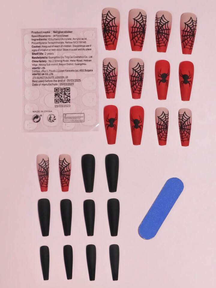Goth الأظافر الزائفة كامل مقاس لين مع هلام صمغ يشمل 24قطع/طقم