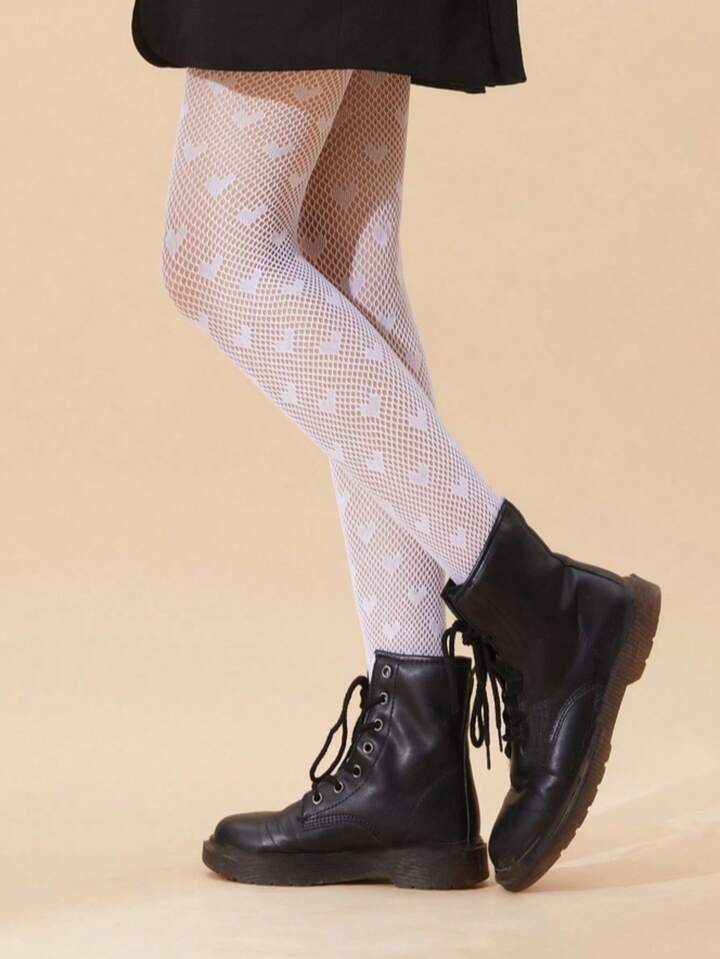 Goth الجوارب نمط شبكة صيد السمك أسود & أبيض قلب منقوشة 2 ازواج