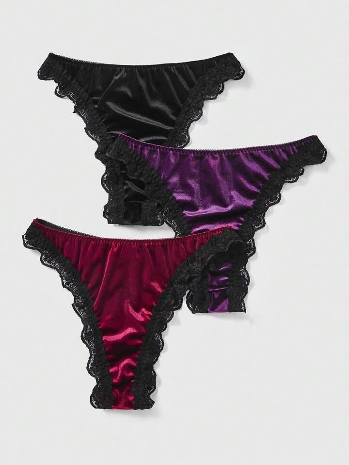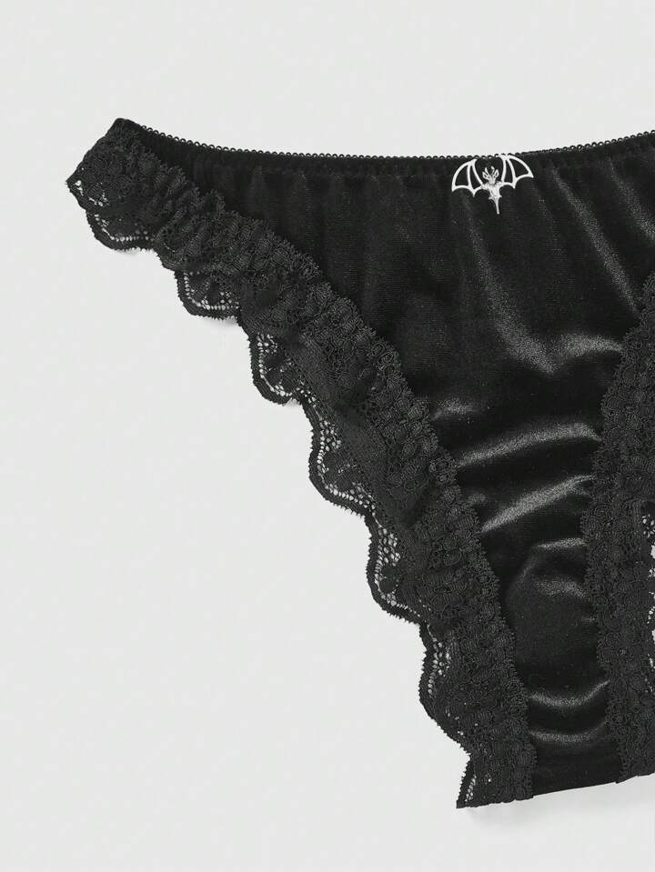 Goth ثلاثة سروال داخلي مثلث معلق من القطن المخملي والدانتيل المجسم بأجنحة الخفاش