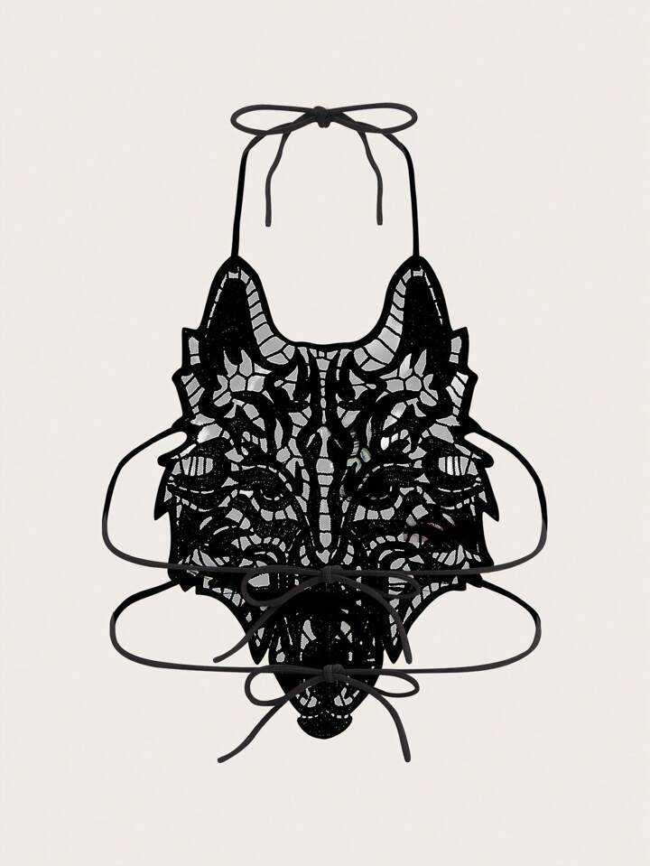 Goth لانجري جذابة نسائية عارية الذراعين التطريز رباط الظهر تصميم الحيوانات