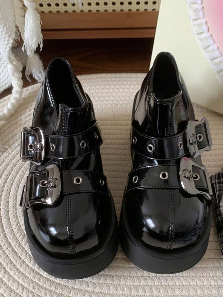 Goth حذاء بديكور مشبك نعل سميك نساء