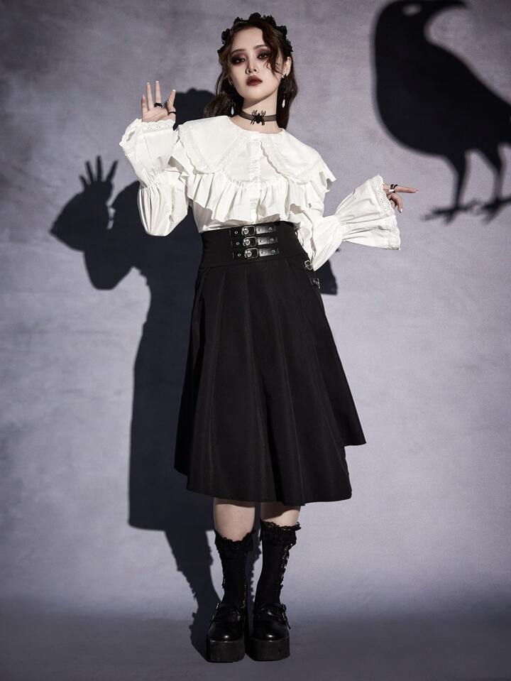 Goth تنورة بتفاصيل مشبك خصر عالي غير متماثل